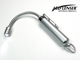 LED LENSER MOVER SUPER-MINI は、砲弾型白色LED×1灯搭載の小型・軽量のLEDライトです。360度可動のフレックス・アームが特長です。照射部のレンズ作用で、クッキリと照らします。電源は、LR-41×4個使用です。点灯・消灯方法は、ボディ部のプッシュ・ボタンで操作します。付属のクリップで、ポケットに簡単に差し込めます。