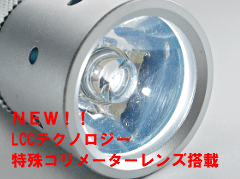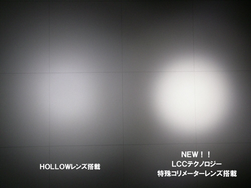 LCCテクノロジー特殊コリメーターレンズ+1W-LED:GALLIU CHIP搭載で、HOLLOWレンズ搭載モデルより中心照度の明るさが約1.8倍※になりました。