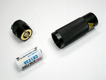 電源は、リチウムCR123A×1本使用です。