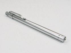 電池を2本使用です。点灯消灯方法は、エンド部回転式です。携帯に便利な金属クリップ付です。