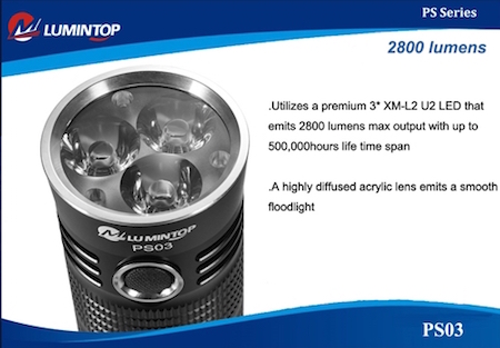 | LUMINTOP ルミントップ PS03 Search Flashlight【XM-L2 U2 LED 搭載 / 明るさMAX:2800ルーメン / 18650×4本】経済的な充電式タイプ |