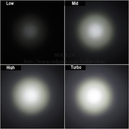 明るさ / 点灯時間 Turbo: 2800 lumens / 3hours Hight: 1500 lumens / 3hours Mid: