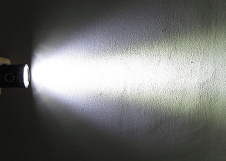4段階明るさ切替機能+ストロボ機能搭載 プッシュ・ボタンを押すごとに明るさが切り替わります。