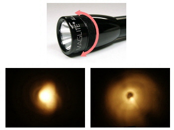 ヘッド部の回転で、スポット〜ワイドの焦点調整が可能