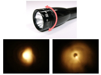 ヘッド部の回転で、スポット〜ワイドの焦点調整が可能