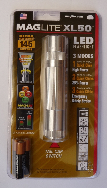 | 【パッケージ仕様:ブリスターパック】 MAGLITE XL50 LED Flashlight 本体色:シルバー : XL50-S3106 |