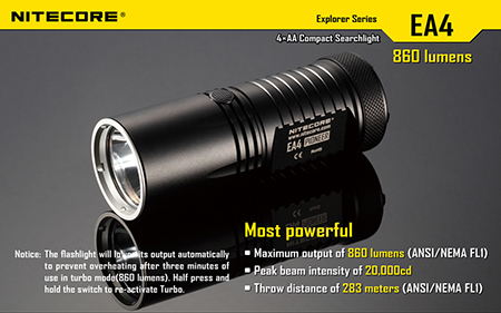 | 昆虫採取用赤色LEDライト 赤色フィルター付属モデル NITECORE EA4 : PIONEER 【Explorerシリーズ CREE XM-L U2 Cool White 搭載 / 単3電池×4本使用】 |