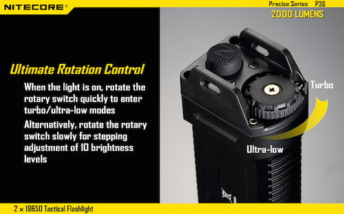 片手で点灯・消灯ができるプッシュスイッチ搭載 ダイヤル式ロータリー切替スイッチ搭載で操作性UP!