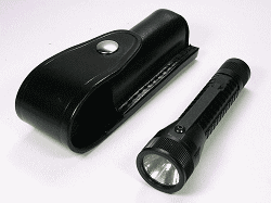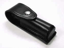 本革製フラップ・フタ付ホルダーです。フタの開閉は、スナップ・ボタン式です。背面ベルト・ループは、固定ループです。ライトの収納向きは、ヘッド部が上になります。