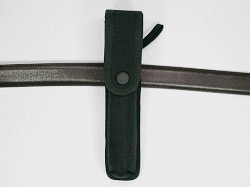 MICHAELS OF OREGON社製フタ付ホルダーです。前面、背面、上部に衝撃緩和加工が施されています。フタの開閉は、スナップ・ボタン式です。背面ベルト・ループは、固定ループです。ライトの収納方向は、ヘッド部が上です。