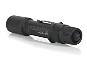 NIGHT-OPS Falcata 9V, Black は、Xenon塔載のタクティカル・ライトです。本体は、アルミ製です。電源は、CR123リチウム電池×3個使用です。点灯・消灯方法は、エンド部で操作します。テール部のコンバット・グリップは、取り外しできます。