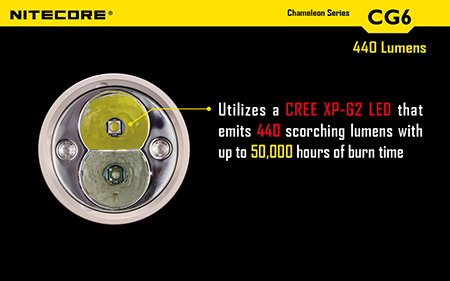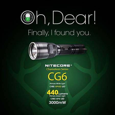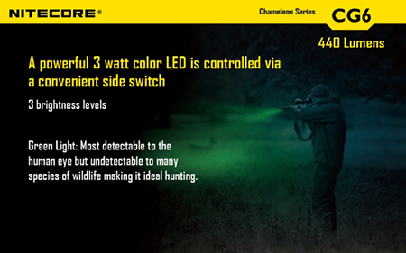 NITECORE CG6 ナイトコア【白色 : CREE X-G2 + 緑色 : CREE XP-E + 砲弾型LEDマルチカラー(赤/青/緑)×2灯搭載 / 明るさMAX440ルーメン / CR123×2本 or 18650×1本使用】