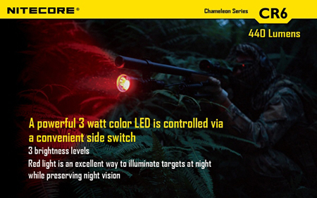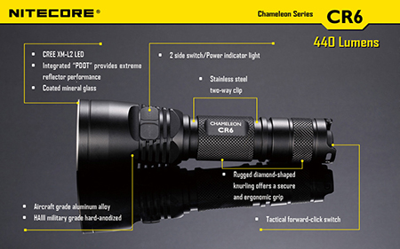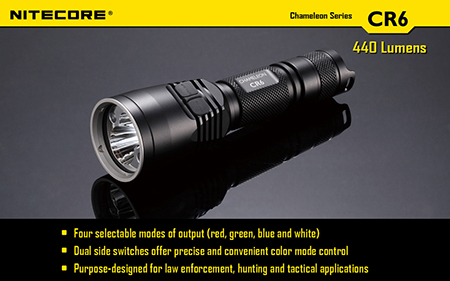NITECORE CR6 ナイトコア【白色 : CREE X-G2 + 赤色 : CREE XP-E + 砲弾型LEDマルチカラー(赤/青/緑)×2灯搭載 / 明るさMAX440ルーメン / CR123×2本 or 18650×1本使用】