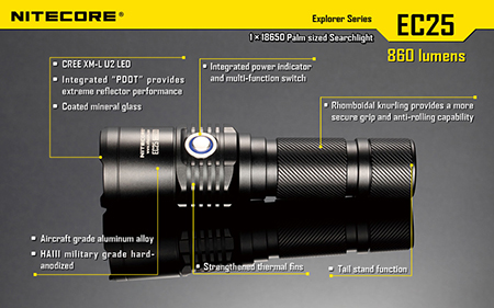【CREE XM-L Neutral White 搭載】 NITECORE EC25w COBRA ナイトコア Explorerシリーズ 【 CR123×2本 or 18650×1本】