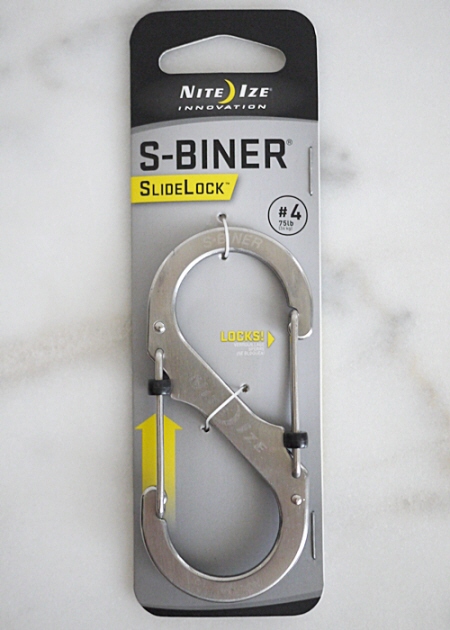 S字の形の金具にカラビナ式のフックが2つついているアクセサリーカラビナです。