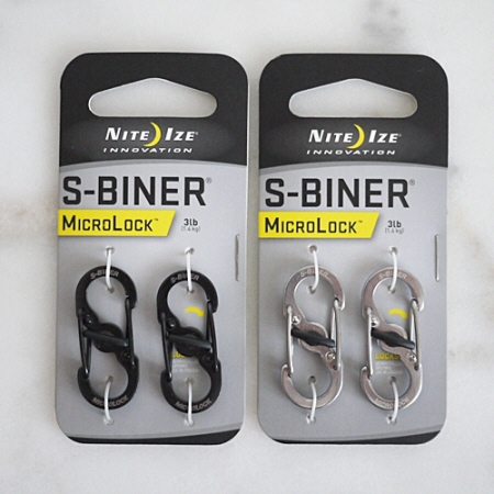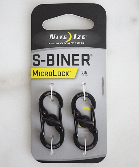 S字の形の金具にカラビナ式のフックが2つついているアクセサリーカラビナです。