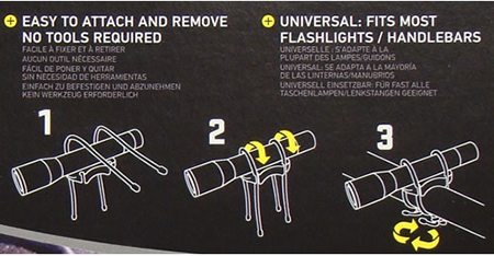 お手持ちのマグライトやコンパクトライトを自転車に装着する事ができます。