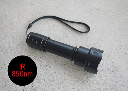 照射時に光源の赤外線LEDを覗くと、ぼんやりと赤色に光っています。