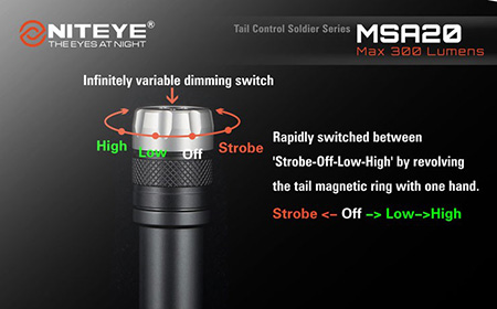 この位置で、テールスイッチを押し続けると明るさを無段階で切り替えることができます。