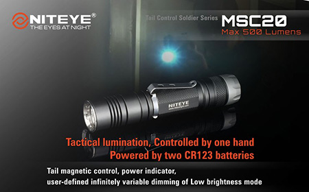 使用電源は、CR123×2本 or 18650×1本(別売)です。