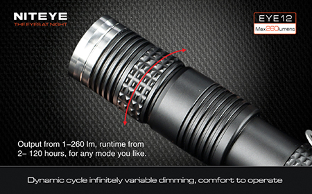 リングを回すと点灯しはじめます。徐々に明るさが強くなります。