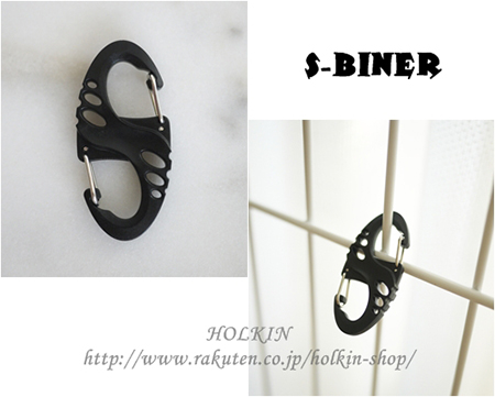 S字型のプラスチック製の、アクセサリーカラビナ。