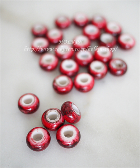 5個入り/1パック 赤+ダークコーヒー ラウンド・アクリルビーズ【ホール径:5.5mm】パラコード