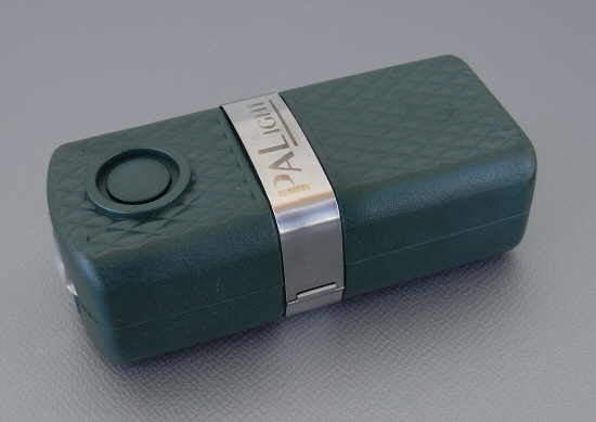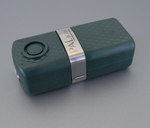 | PALight Survival は、砲弾型緑色LED×1灯搭載の小型ハンド・ライトです。暗闇の中で、ライトを素早く探せるように、常時微光発光機能を搭載しています。地震などの災害に備えて、枕元に置いておきたいライトですね。点灯・切替方法は、グリップ部上のプッシュ・ボタンを押します。プッシュ・ボタンを押すと、点灯(強)→点灯(弱)→点滅→常時微光発光→点灯(強)・・・と切り替わります。照射部に集光レンズが搭載されており、スポット状に照射します。電源は、9Vアルカリ電池×1本使用です。本体は、ラバー・ゴムで覆われています。 |