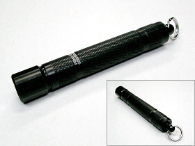 は、アルミ製ハード・アナダイズド・ボディに、砲弾型白色LED×3灯搭載の小型LEDライトです。全長約88mm、径12mmのスリム・サイズです。電源は、単4アルカリ電池×1本使用です。点灯・消灯方法は、ヘッド部回転式です。エンド部には、キー・リングがついています。 |