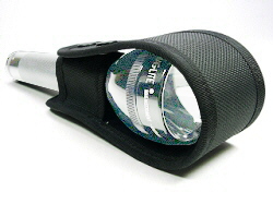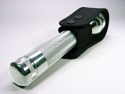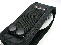 突き刺し型 フラップ・フタ付きのホルダーです。フラップ・フタの開閉は、スナップ・ボタンです。背面ベルト・ループは脱着式です。ライトの収納方向は、ヘッド部が上です。PELICAN純正品