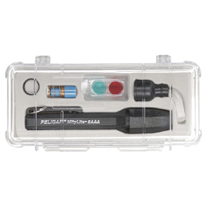 PELICAN MityLiteに、スペア交換球+キーリング+レッド・フィルター+NVグリーン・フィルター+ライト・ベンダーが付属したモデルです。携帯に便利な+キャリング・ケースに入っています。