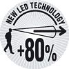 新型のLEDを使用しているヘッドランプは、従来のものと比較して照射距離が最大80%アップします。 |