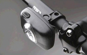 | Princeton Tec AURORA BIKE は、砲弾型白色LED×3灯搭載のLEDライトです。1インチ径に対応したハンドル装着具と自転車用ヘルメット対応装着バンドが同封です。5段階で、点灯モードを切り替えることができます。点灯・切替・消灯は、ヘッド部プッシュ・ボタンで操作します。プッシュ・ボタンを押すごとに、明るさを、強→中→弱→点滅(低速)→点滅(高速)・・・ の切替ができます。使用電源は、単4アルカリ電池×3個です。ヘッド部は角度調整が可能です。 |