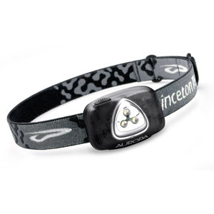 Princeton Tec AURORA は、砲弾型白色LED×3灯搭載のヘッド・ライトです。5段階で、点灯モードを切り替えることができます。点灯・切替・消灯は、ヘッド部プッシュ・ボタンで操作します。プッシュ・ボタンを押すごとに、明るさを、強→中→弱→点滅(低速)→点滅(高速)・・・ の切替ができます。使用電源は、単4アルカリ電池×3個です。サイズ調整ができる布製ヘッド・バンドがつています。ヘッド部は角度調整が可能です。画像詳細は