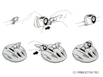 ハンドル と 自転車用ヘルメットに取り付けれます。