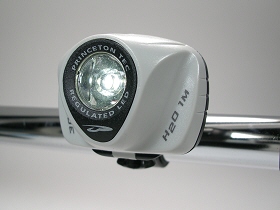 | Princeton Tec EOS BIKE は、自転車取付タイプの1W-LED塔載のライトです。ハンドル装着具と自転車用ヘルメット対応装着バンドが同封です。4段階で、点灯モードを切り替えることができます。点灯・切替・消灯は、ヘッド部プッシュ・ボタンで操作します。プッシュ・ボタンを押すごとに、明るさを、強→中→弱→点滅 の切替ができます。照射部に特殊レンズが搭載されており、集光性が高められています。使用電源は、単4アルカリ電池×3本です。 |