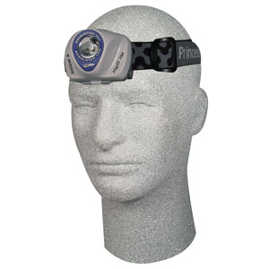 | Princeton Tec EOS は、1W-LED塔載のヘッド・ライトです。シンプルで機能的なデザインが特長です。4段階で、点灯モードを切り替えることができます。点灯・切替・消灯は、ヘッド部プッシュ・ボタンで操作します。プッシュ・ボタンを押すごとに、明るさを、強→中→弱→点滅の切替ができます。照射部に特殊レンズが搭載されており、集光性が高められています。使用電源は、単4電池×3本です。サイズ調整ができる布製ヘッド・バンドがつています。ヘッド部は角度調整が可能。画像詳細は