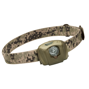 | Princeton Tec EOS Tactical は、1W-LED塔載のヘッド・ライトです。。照射部には、上下スライド式赤色フィルターが付いています。(フィルターは、付属の青色フィルター、緑色フィルター に付け替えることができます。)点灯モードは、4段階(強→中→弱→点滅)に切り替えることができます。点灯・切替・消灯は、ヘッド部プッシュ・ボタンで操作します。電源は、単4アルカリ電池×3個です。ヘッド部は角度調整が可能です。 |