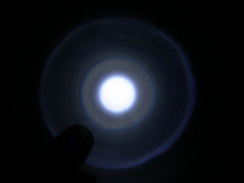レンズ効果でスポット状に照射します。