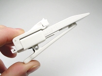 Quiqlite NIGHT NURSE は、砲弾型白色LEDを1灯搭載したクリップ付小型LEDライトです。清潔感のある綺麗なボディ・カラーが特長です。シャツのポケットに、クリップで簡単に装着できます。手元の比較的狭い範囲のみを照らすことができます。暗闇で、ハンドフリーでレポートを書くことができます。ヘッド部は、可動式で90度の角度の範囲で、照射方向を、手動で調整できます。使用電池は、ボタン型CR2032リチウム電池を2個使用。電池交換可能です。電池を節約するため、7分間で自動的に消灯する、オート・オフ機能付。背面に装着可能な着脱式大型クリップが付属しています。