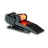 LED + White LED は、砲弾型赤色LED×1灯+白色LED×1灯を搭載したクリップ付小型LEDライトです。背面に装着可能な着脱式大型クリップが付属しています。ジャケットのポケットに、クリップで簡単に装着でき、暗闇で、ハンドフリーで本を読んだり、地図を見たり、レポートを書くことができます。また、フラップ付ポケットに装着した場合は、照射ヘッド部がフラップで覆われるようにデザインされているので、日中に装着していても違和感がありません。点灯・消灯方法は、プッシュ・ボタン式です。プッシュ・ボタンを押すと赤色LED点灯→白色LED点灯→消灯・・と切り替わります。ヘッド部は、可動式で90度の角度の範囲で、照射方向を、手動で調整できます。使用電池は、ボタン型CR2032リチウム電池を2個使用。電池交換可能です。電池を節約するため、7分間で自動的に消灯する、オート・オフ機能付です。 |