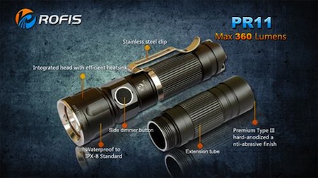 ROFIS ロフィス PR11 【Cree XM-L2 LED搭載 / 明るさMAX360ルーメン / 単3×1本 or 単3×2本 or