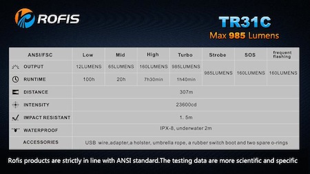 307 Meters(Max) Peak Beam Intensity: 23,600cd (Max) Output Lumens :
