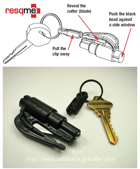 | ResQMe レスキューミー Keychain Rescue Tool 車用緊急脱出・救出用ツール キーホルダー付【本体色:ブラック】非常用ツール 安全ツール / Safety Tool |