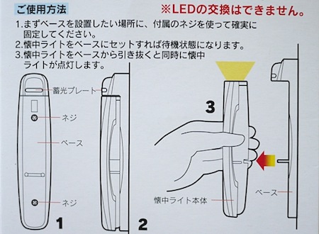 非常時にすばやく対応! ベースから引き抜くと自動的に点灯します。