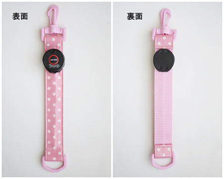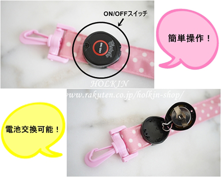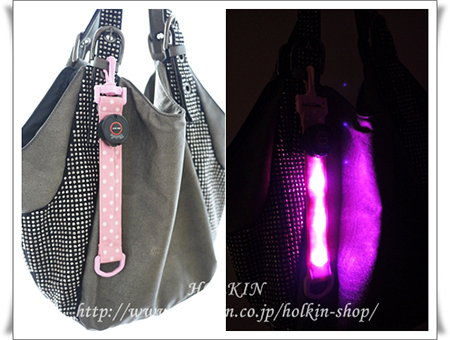 【新製品】10月21日入荷 安全LEDライト Type:B 【水玉柄ライトピンク / PPベルト:Babyピンク / 光の色:ピンク】 下校安全ライト・夜のお散歩・ウォーキング・ランニング・セーフティーLEDライト プラスチックパーツ ナスカン Dカン ラミネート&PPベルト使用