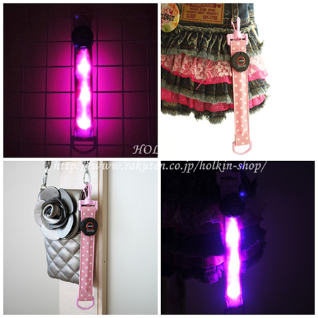 【水玉柄ライトピンク / PPベルト:Babyピンク / 光の色:ピンク】1点です。