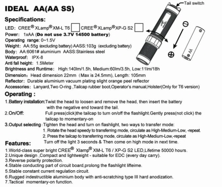 SKILHUNT IDEAL AA 【点灯方法:テール・プッシュボタン/CREE XM-L T6搭載/単3アルカリ電池×1本使用】