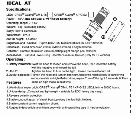 SKILHUNT IDEAL AT 【点灯方法:ヘッド部回転式/CREE XM-L T6搭載/単3アルカリ電池×1本使用】