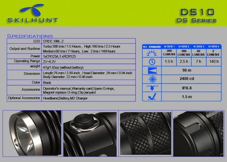 Turbo : 300Lumens /